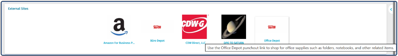 Users can now view the punchout description in a tooltip when hovering over a punchout in the External Sites section on the landing page.